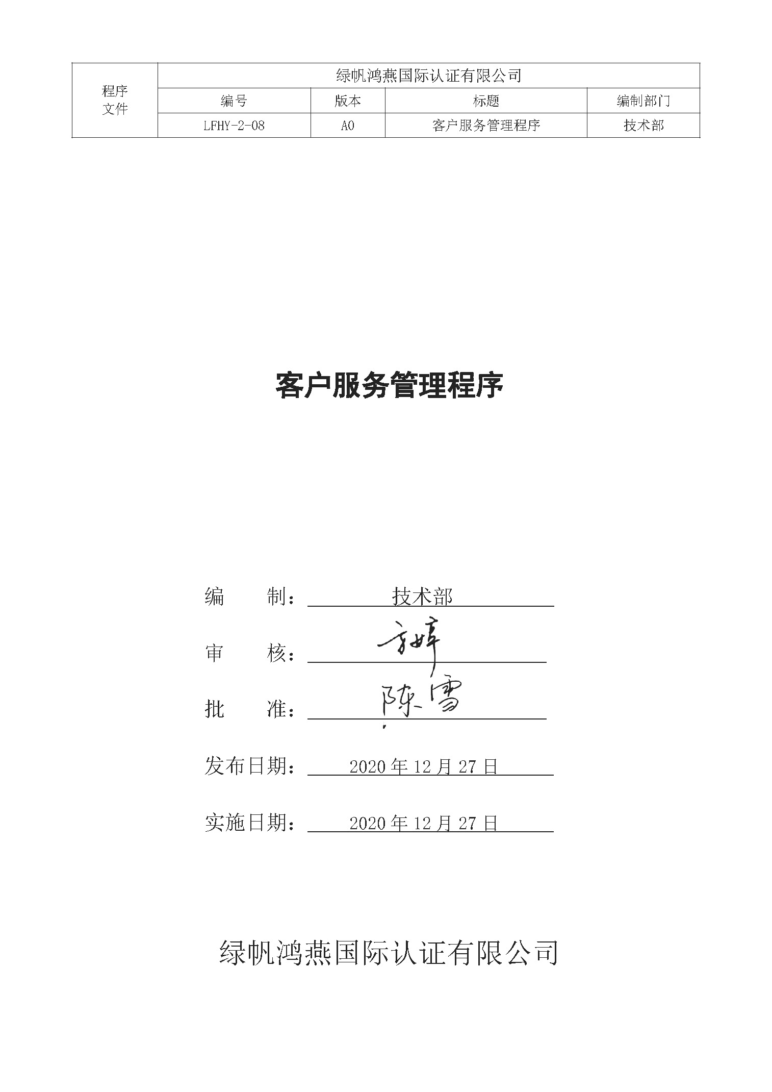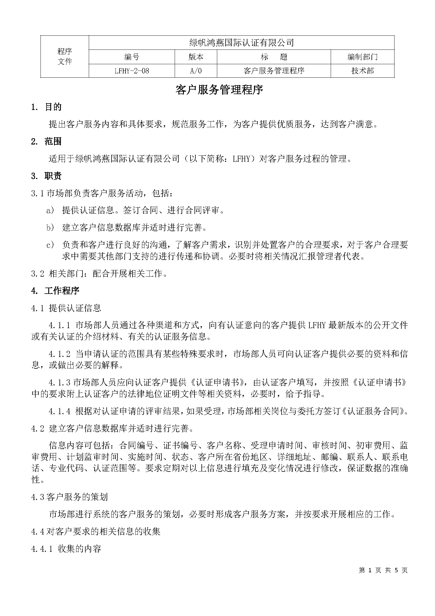 LFHY客戶服務(wù)管理程序
